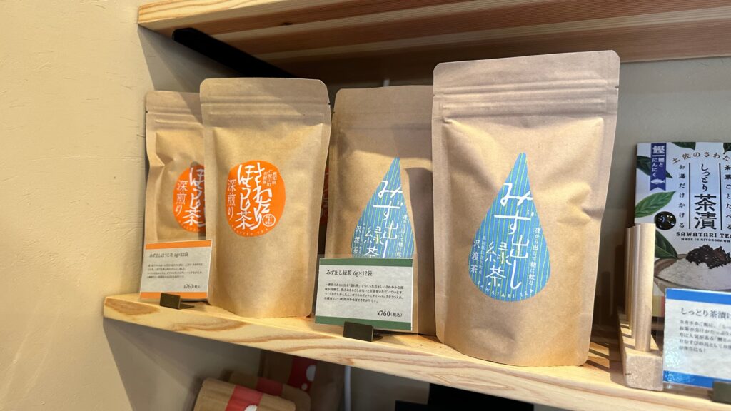 豊かな自然の中で、沢渡茶、さわたりほうじ茶、香ル茶(和紅茶)の中からお好みの一杯を選んで、心地よい一服をゆったりと楽しんでください♪