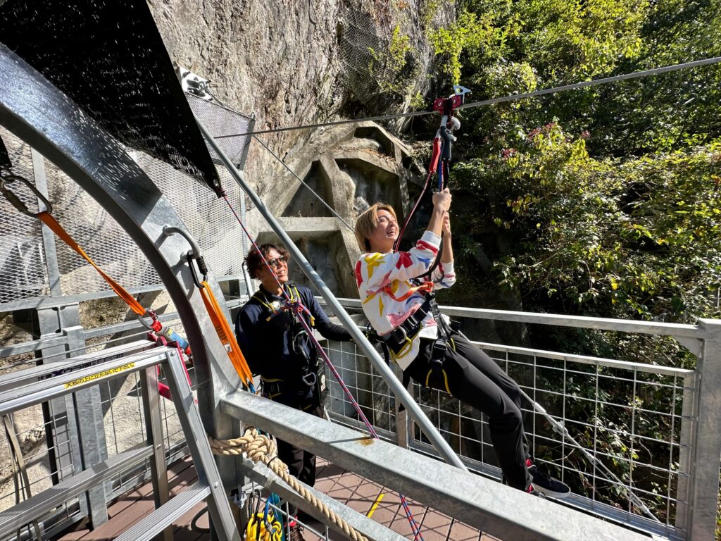 渓谷の美しさに酔いしれながら、心躍るジップラインでスタート地点へ向かいます。